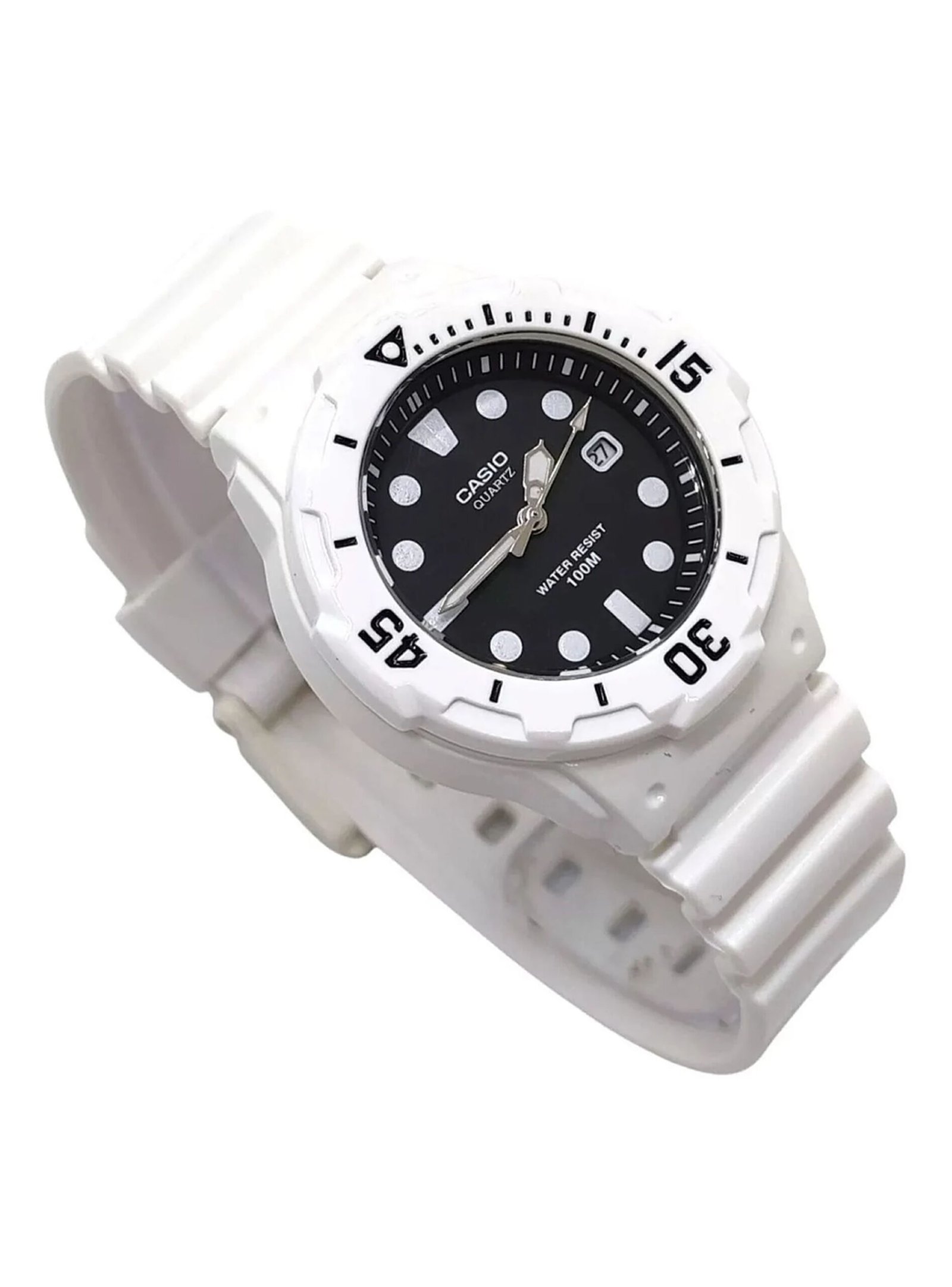Casio LRW-200H-1EV, reloj analógico deportivo resistente al agua 100m. Caja de resina, bisel giratorio y fechador. Estilo casual y ligero, ideal para uso diario y actividades acuáticas.